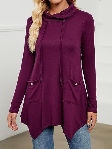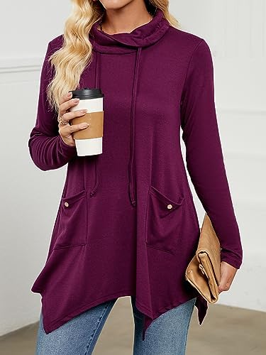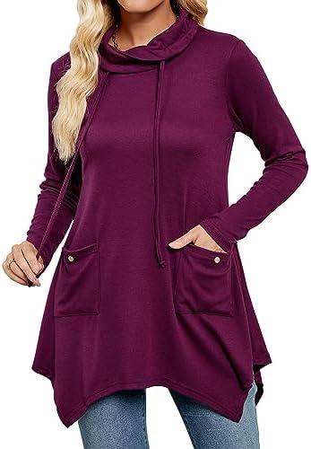 RANPHEE Women’s Long Sleeve Tops 2023 Fall Trendy Clothes Cowl Neck Loose Fit Pullover Sweatshirts Casual Shirts with Pockets