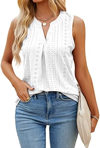 RANPHEE Womens Summer Tank Tops 2023 V Neck Dressy Casual Sleeveless Work Shirts Cute Fashion Clothes Eyelet Cami Blouses