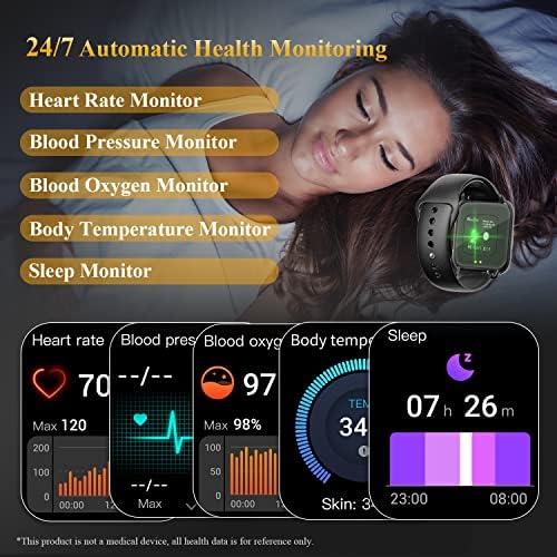 ✨ [Sleep Monitoring & Health Tracking] H5 Smart watch sleep monitors track your sleep patterns in real-time, and provide sleep breakdown reports on watch or on the App. Built in health tracker watches your heart rate, blood pressure, blood oxygen levels and body temperature automatically throughout the day. (Note*This product is not a medical device, all health data is for reference only, not as an absolute mean for judging health). Additional health functions include sedentary reminder, women’s menstrual cycle tracking, pedometer, calorie tracker, distance tracker and daily step goals.