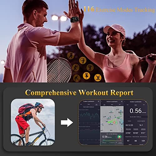 ✨ [Large 1.9 Inch Touch Screen and 116 Exercise Modes] This digital fitness smartwatch comes with over 200 watch face designs to choose from. Or DIY customize your own photo as a watch face on the 1.9” Inch AMOLED Touch Screen. Activity tracker supports tracking of 116 Exercise Modes. Such as: running, walking, gym exercise, cardio, cycling, basketball, football, badminton, rope skipping, table tennis, tennis, baseball, yoga, etc. Link to the GPS on your smartphone to show exercise workout stats like pace and distance plus a map of your workout movement.