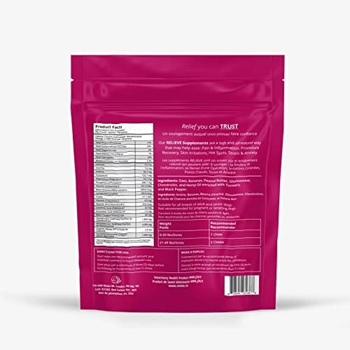 RELIEVE Pet Supplements, for DOGS/CANINES – Chews (Small Breed) 100g | Calming Hemp Supplement | Pain and Inflammation | Procedure Recovery | Skin Irritations | Hot Spots | Stress and Anxiety | Viral Infections | Depression | Separation Anxiety ~ Turmeric ~ Black Pepper ~ OMEGA-3 ~ OMEGA-6 ~ Vitamin Rich | Plant-Based | Preservative Free