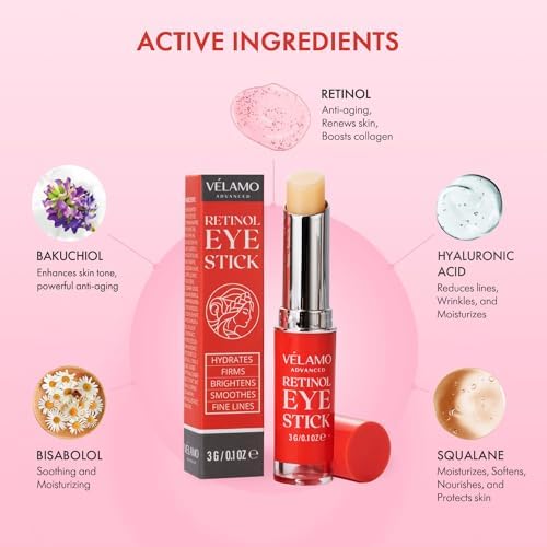 🌟The Retinol Eye Cream for Dark Circles and Puffiness – VELAMO ADVANCED retinol eye stick is s a complete multi-treatment balm for younger-looking, brighter, and well-rested eyes. Our eye brightener stick works like a charm as under eye cream anti aging solution. This power-packed and do-it-all balm visibly boosts bounce and moisture levels. Most importantly, it is safe for sensitive skin.