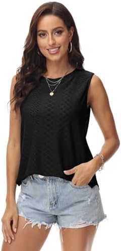 RIROW Womens Tank Tops Eyelet Embroidery Crewneck Shirts Summer Sleeveless Women 2024 Casual Loose Fit Tunic Basic Top S-2XL