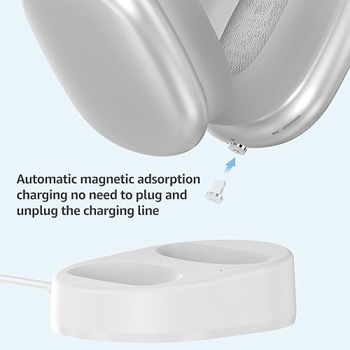 【High Quality Material】: Charging stand for AirPods Max is made of high-quality silicone and metal, which is soft, lightweight and durable, and it can avoid scratching the surface of the earphones. The bottom of the charging stand has a non-slip design to increase stability and friction, it is not easy to fall and damage.