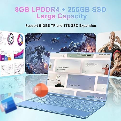 【STORAGE AND MEMORY】Aocwei laptop has built-in 8GB DDR4 and 256GB SSD storage space, Support up to connect 512GB TF card and 1TB SSD Expansion, Sufficient memory handles multi-application and multimedia workflows efficiently and quickly, plenty of space and faster read and write speeds for your documents, photos and videos.