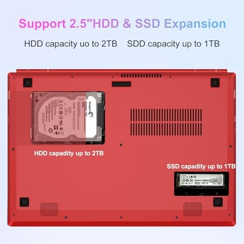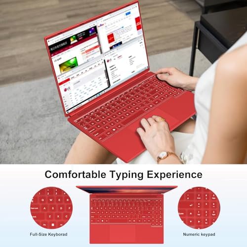 Ruzava/Aocwei 16″ Laptop 12+512GB Newest CPU N5095 (Up to 2.9Ghz) 4-Core Win 11 Pro PC with Cooling Fan 1920 * 1200 2K Screen Dual WiFi Support 2.5″ HDD 1TB SSD Expand for Game Work Study-Red