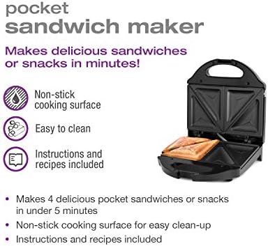 Pocket Sandwich Maker: Our sandwich press and panini maker makes 4 delicious pocket sandwiches or snacks in under 5 minutes
