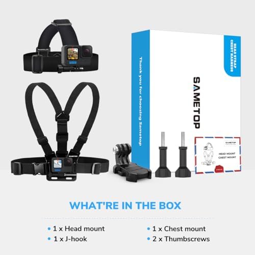 Sametop Head Mount Strap Chest Mount Harness Chesty Kit Compatible with GoPro Hero 12, 11, 10, 9, 8, 7, 6, 5, 4, Session, 3+, 3, 2, 1, Hero (2018), Fusion, Max, DJI Osmo Action Cameras