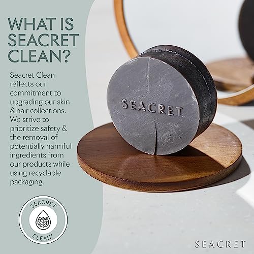 SEACRET CLEAN SOAP: Containing Dead Sea minerals, SEACRET MUD SOAP gently cleanses, exfoliates, and hydrates your facial skin, leaving it soft, smooth, and radiant while giving it a healthy glow; the 1 bar of black mud soap for normal to oily skin leaves your skin looking and feeling its best; made in Israel, its round disk bar soap bar contains 4.4 ounces and comes in a gift box
