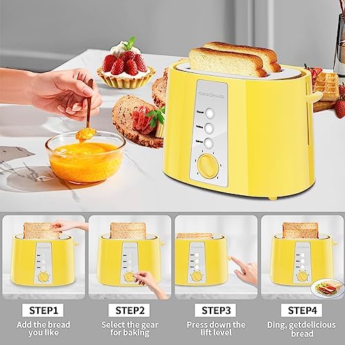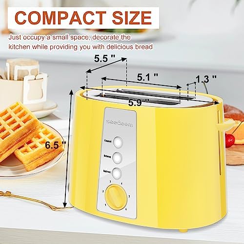 SEEDEEM Toaster 2 Slice, Extra Wide Slot Toaster, 6 Shade Settings, Bread Toaster with Cancel, Defrost, Reheat Function, Extra Wide Slots for Waffle or Bagel, Removable Crumb Tray, 900W, Lemon Yellow