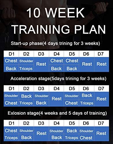 Different colors target specific muscles (blue chest, red shoulders, yellow back, and green triceps). Two handles can be switched to multiple positions and angles to shape and maximize upper body muscles.
