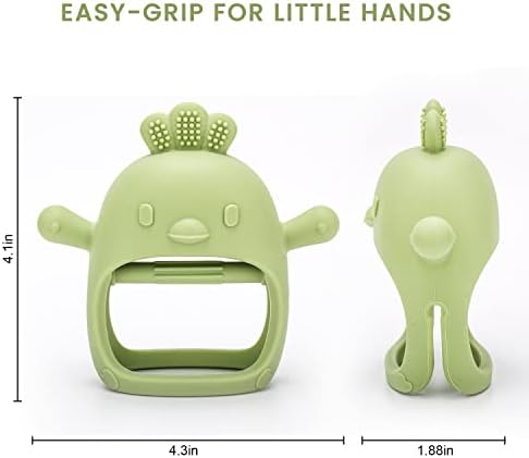 Silicone Baby Teether Toy for Infants 3+ Months, BPA Free Anti-Drop Silicone Mitten Teething Toy for Soothing Sore Gums, Baby Chew Toys for Sucking Needs, Olive Green