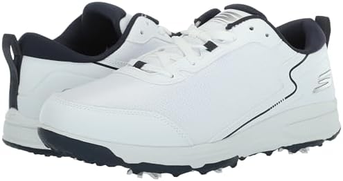 Skechers Men’s Torque Sport Fairway Relaxed Fit Spiked Golf Shoe Sneaker, White/Navy, 9 Wide