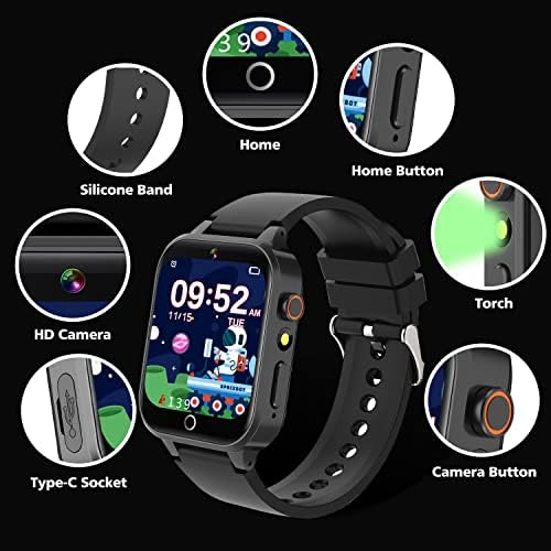 Muti-Functional Smart Watch for Kids: Kids watch with a camera, 26 puzzle games, MP3 player, pedometer, voice recorder, calculator, torch, alarm, stopwatch, theme, screensaver select, backlight time, School mode, five country language, etc. The most important thing is that it has many tools that help improve children’s skills.