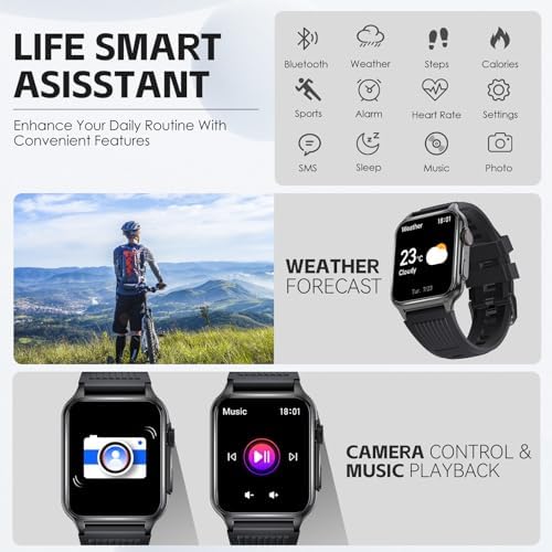 ⌚【EFFICIENT LIFE】- To bring convenience to your life, WitUser smartwatch for men and women is equipped with many functions, including alarm clock reminder, remote camera, sedentary reminder, weather display, music control, voice assistant, etc. In addition, this smartwatch is compatible with Android system version 4.4 or above, iOS version 8.0 or above devices, which with the technical support of good compatibility.