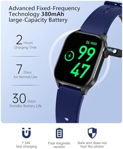 【Battery Life and Compatibility】The T98 smartwatch features a newly upgraded ultra-low power 7013A chip and a robust 380mAh battery, which can last approximately 7 days on a single 2 hour charge for daily use and up to 30 days on standby, providing you with a more reliable and exciting experience. Additionally, the watch has a screen saver function, making your user experience more intelligent and convenient. Compatible with Android 5.0/iOS 10.0 or higher versions.