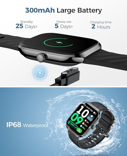 đă300 mAh Large Battery & IP68 waterproof ăEGQINR P103 watches for women packs with a high-capacity, energy-efficient battery, long battery life let you experience uninterrupted smart living. Fully charge for 2 hours, support 5-7 days heavy use, saying goodbye to frequent charging (exact duration of use will vary with the frequency of use). Mens smart watch boasts an IP68 waterproof rating, ensuring worry-free use even while washing hands, face, or engaging in sweaty activities.
