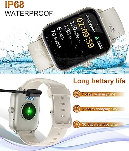 ⌚【100 Sports Modes/IP68 Waterproof】Sleek and simple sport watch for men women with 100 sports modes (walking, running, cycling, elliptical, yoga, pilates, swimming, dancing, rowing machine, etc.) to get personalized exercise data and advice by tracking steps, distance, calories, activity time and heart rate.This iOS android smart watch has IP68 waterproof performance, so you can wear it in the pool, while washing your hands or during outdoor activities.(Not recommended to be worn in the shower or in environments with water vapour, not in contact with hot water)