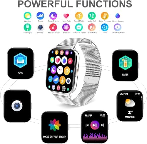 Smart Watch for Women (Call Receive/Dial) Fitness Watch with Sleep Tracker Pedometer Heart Rate AI Voice Control Monitor 1.69 inch Touch Screen Waterproof Digital Smart Watch for iOS Android Phones