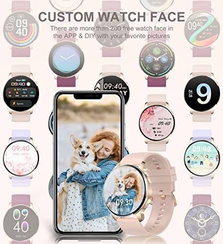 ALL-ROUND HEALTH MONITORING: This women smart watch can detect your 24/7 heart rate, blood pressure and blood oxygen to get a better understanding of your health (Not for medical use). The high-performance motion sensor monitors sleep status automatically and provides comprehensive sleep quality analysis (deep sleep, light sleep and awake). You can also use the Female Physiological Cycle, Drink Reminder and Sedentary Reminder features to help you make reasonable adjustment on your lifestyle.