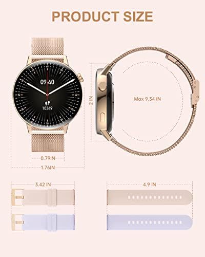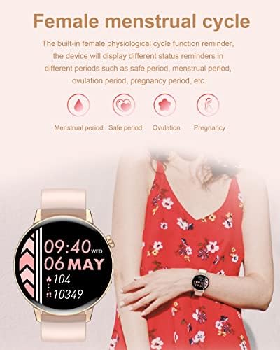 【Customize Your Personalized Watch Face】 This Lefitus smart watch has a 1.3 inch round screen with gold metal frame exquisite craft.The smartwatch includes 4 default dials,and App has more than 200 free dials.You also can choose your favorite picture or photo to show your personalized style.Womens watch come with two skin-friendly bands(Pink & Light Purple) that you can choose the color according to your cloth and mood.
