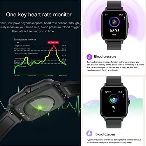 Adopted newest chip and advanced HRS3300 heart rate sensor, monitor heart rate automatically every 10-60 minutes all day. Measure the sleep time and sleep quality and display the measurement result. In addition to tracking real-time heart rate on the watch, also view your heart rate visually in the APP.