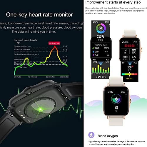 Adopted newest chip and advanced HRS3300 heart rate sensor, monitor heart rate automatically every 10-60 minutes all day. Measure the sleep time and sleep quality and display the measurement result. In addition to tracking real-time heart rate on the watch, also view your heart rate visually in the APP.