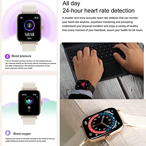 Smart Watch with Bluetooth Call for Women, Activity Fitness Tracker Watch with 1.7″ DIY Full Touch Screen, Blood Pressure SpO2 Heart Rate Sleep Monitor Pedometer for Android and iPhone (Gold)