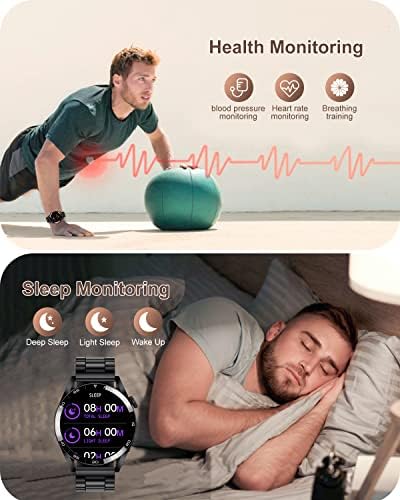 💖【Leading a Healthy Lifestyle】24-hour real-time monitoring to help you develop healthy habits! The health smartwatches has advanced monitoring capability to monitor your 24-hour dynamic heart rate and the whole process of sleep (deep sleep, light sleep, wakefulness),so you can better understand your physical condition.In addition, the military smart watch can also perform breathing exercises to help relax and reduce stress.