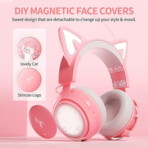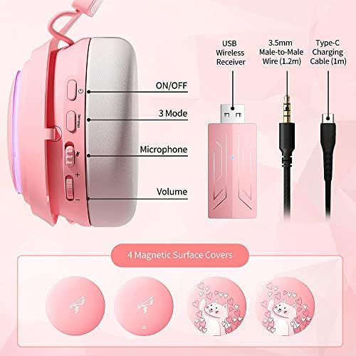 SOMIC GS510Pro Pink Cat Ear Gaming Headset, Bluetooth/2.4GHz Wireless Headset with Retractable Mic, RGB Lights, 7.1 Surround Sound Headphones for PS5, PS4, Laptop, PC, Smartphone…