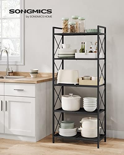 SONGMICS 5-Tier Metal Storage Rack, Shelving Unit with X Side Frames, Dense Mesh, 12.6 x 23.6 x 57.3 Inches, for Entryway, Kitchen, Living Room, Bathroom, Industrial Style, Black