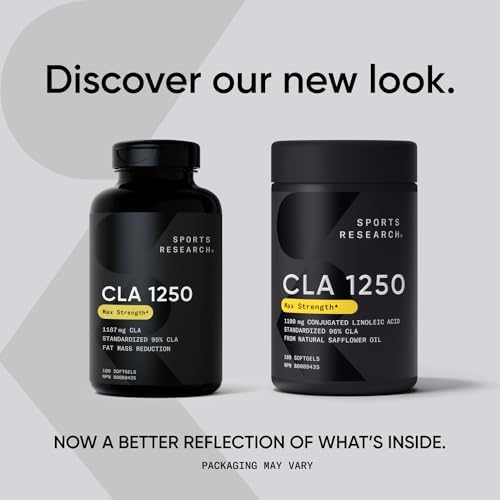 Sports Research CLA – 1250mg with Active Conjugated Linoleic Acid for Men and Women | Non-GMO, Soy & Gluten Free – 95% (180 Softgels)…