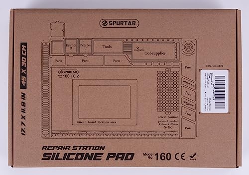 【 Excellent Silicone Repair Mat 】It includes 1X Large circuit board location area; 2X Tool-supplies area; 124 Screws position, 42 Spare units; 3X Parts box with cover; 4X magnet areas; 7X parts storage area. Plenty of areas to keep the parts in and more storage space for tools.