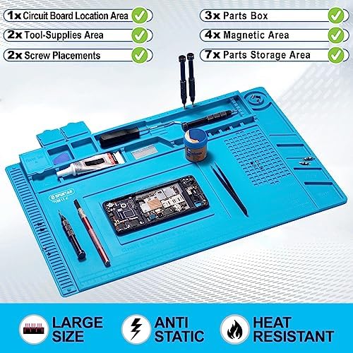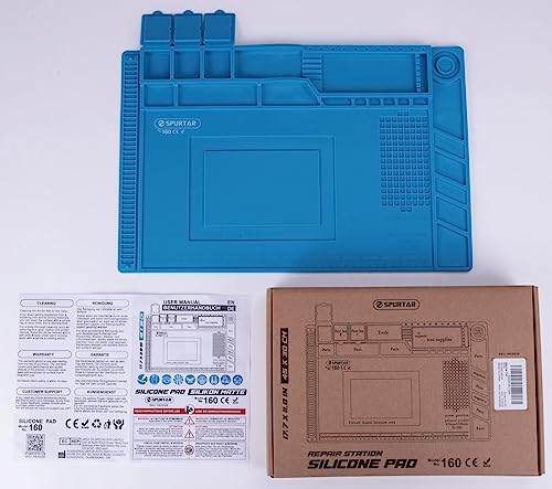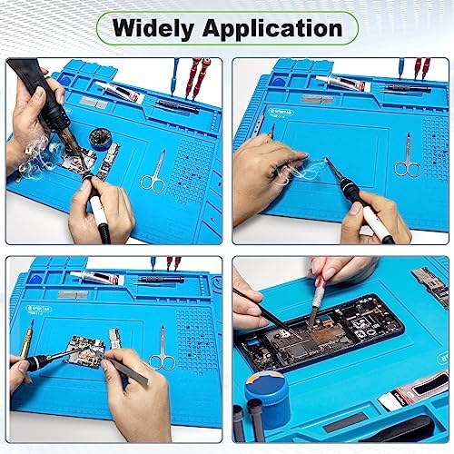 Spurtar Soldering Mat Large, 17.7″ x 11.8″ Silicone Repair Mat Soldering Mat Heat Resistant 932°F Magnetic Silicone Work Mat for Electronic, Soldering, Phone, Laptop, iPad, Watch Repair, Blue, S-160