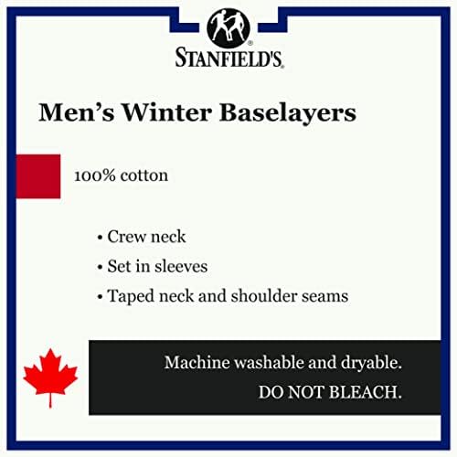 Give winter temps the cold shoulder with the Stanfield’s Men’s Premium Long Sleeve Base Layer Shirt. Crafted with ultrasoft cotton to keep you warm, dry, and comfortable, this tagless crew neck top is ideal for mild to moderate cold weather. Whether you’re hiking a mountain trail, or putting in a day at the yard, our standard fit ensures ease of movement, giving your arms restriction-free range of motion. Flatlock neck and shoulder seams maintain shape and fit while a ribbed knit crew neck and reinforced cuffs keep the chill at bay. Machine washable, our durable base layer is in it for the long haul and will maintain its shape through multiple washes. Includes one long sleeve cotton base layer shirt. When you’ve been making quality clothing for as long as we have, you don’t just learn from legends, you become one. Proudly Canadian. Stanfield’s, quality, comfort, craftsmanship, since 1856.