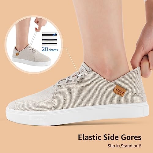 STQ Womens Slip On Shoes | Casual Canvas Sneakers | Memory Foam Loafers Shoes Lightweight