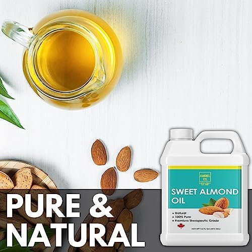 Sweet Almond Oil (16 OZ| 473 ML value size) Non- GMO, 100% Pure Skin and Hair Softener| Expeller- Pressed Great for DIY Beauty and Skincare Products| Use Alone or Add to Cream,