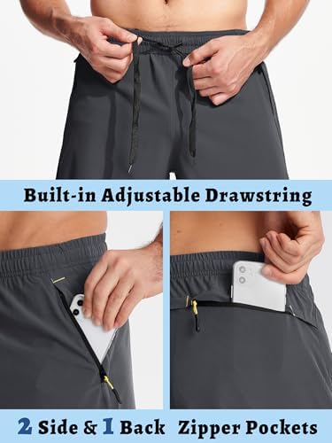 TACVASEN Men¡®s Athletic Running Shorts Drawstring Shorts with Zipper Pockets Summer Outdoor Lightweight Gym Shorts for Men