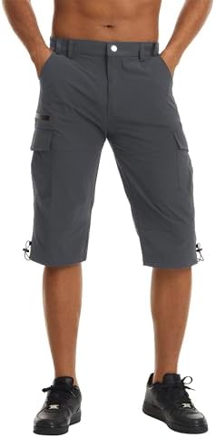 TACVASEN Men’s Hiking Shorts Quick Dry 3/4 Capri Pants below Knee Cargo Shorts Capri Long Shorts Zipper Pockets