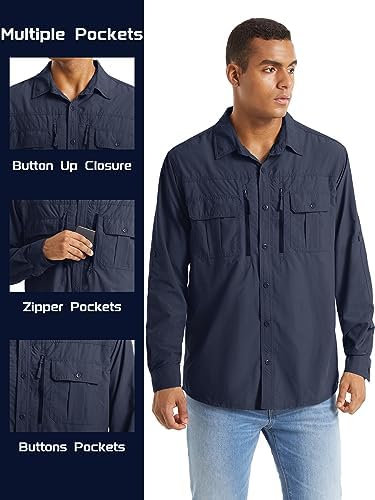 TACVASEN Men’s Tactical Shirts Quick Dry UV Protection Breathable Long Sleeve Hiking Fishing Button Shirts