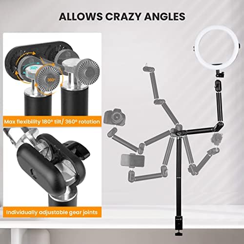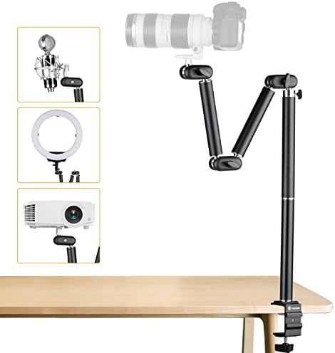 【RESILIENT & STABLE】 Can be loaded horizontally up to 6.6 pounds and vertically up to 11 pounds. DSLR cameras, 19-inch ring lights and projectors can be attached without any worries. Truly a small crane on your work table