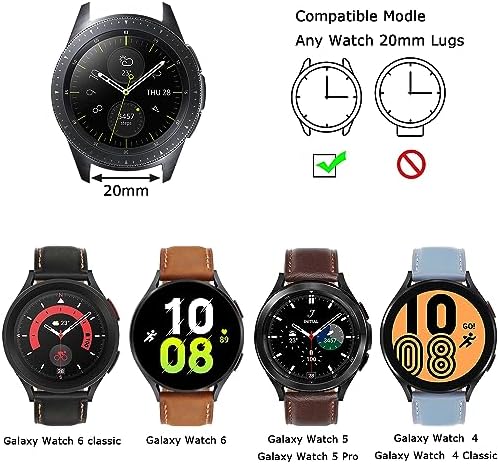 Compatible with Samsung Galaxy Watch 6 40mm 44mm, Samsung Galaxy Watch 6 Classic 43mm 47mm, Samsung Galaxy Watch 5 40mm 44mm, Samsung Galaxy Watch 5 Pro 45mm, Samsung Galaxy Watch 4 40mm 44mm, Samsung Galaxy Watch 4 Classic 42mm 46mm, and Other Watches with 20mm Wide Lug.