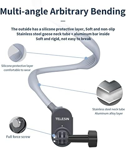 TELESIN Latest designed Neck Holder has a inner length (20cm/7.87″), you will not feel tightened while wearing. Only 0.4 lbs super lightweight, portable and comfortable both for indoor and outdoor activities use.