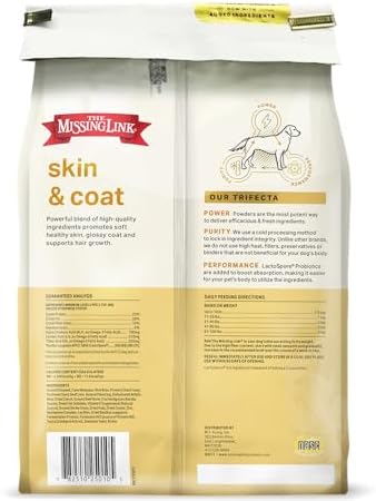 The Missing Link Skin & Coat Probiotics Superfood Supplement Powder for Dogs – Omegas 3 & 6, Fiber, Vitamin-E, Biotin – Supports Healthy Skin & Glossy Coat, Promotes Hair Growth – 5lb