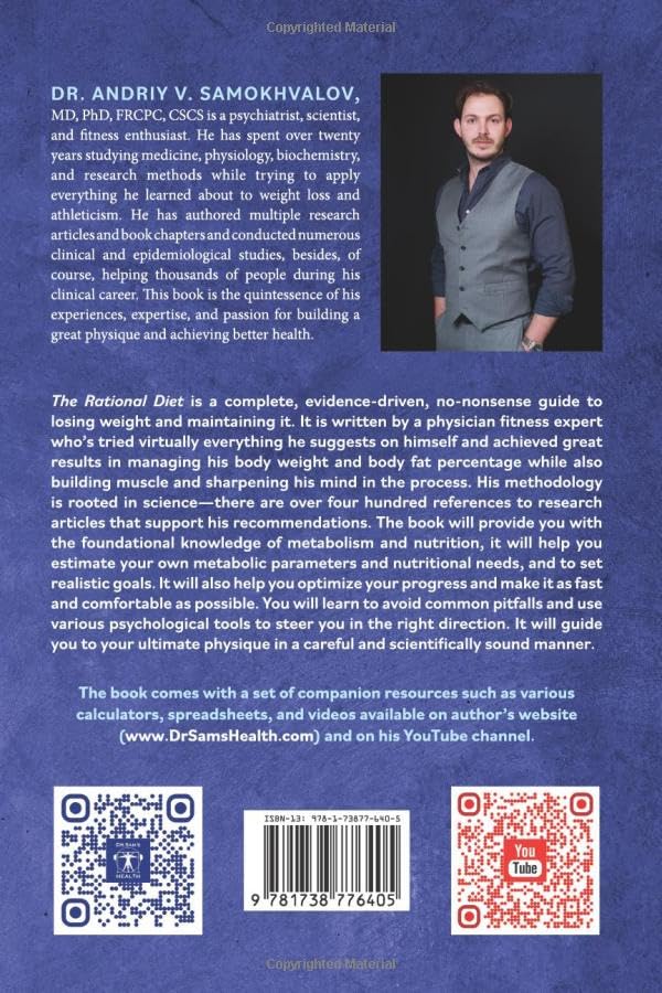 The Rational Diet is a complete, evidence-driven, no-nonsense guide to losing weight and maintaining it. It is written by a physician fitness expert who tried virtually everything he suggests on himself and achieved great results in managing his body weight, body fat percentage, building muscle and sharpening his mind while doing so. His methodology is rooted in science – there are over 400 references to research articles that support his recommendations. The book will provide you with the foundational knowledge of metabolism and nutrition, it will help you estimate your own metabolic parameters and nutritional needs, and to set realistic goals. It will also help you optimize your journey and to make it as fast and comfortable as possible. You will learn how to avoid common pitfalls and how to use various psychological tools to steer your progress in the right direction. It will guide you to your ultimate physique in a careful and scientifically sound manner.
