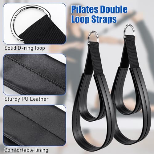 TOBWOLF 2PCS Upgraded Pilates Double Loop Straps, Comfortable Vinyl Pilates Straps for Reformer, Pilates Foot & Hand Straps, Feet Fitness Equipment Straps for Yoga Exercise Accessories Home Gym