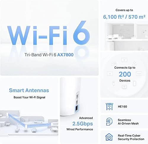 Fast, Far-Reaching Mesh Wi-Fi System: Deco X95 covers your entire home with blazing fast mesh Wi-Fi 6. It uses powerful AX7800 Wi-Fi 6 with TP-Link Mesh technology to deliver strong Wi-Fi throughout your home and even connect up to 200 devices. Tri-Band technology reduces lag that originates from congestion: when too many devices are connected to your Wi-Fi network. The Mesh system automatically connects your devices to the least crowded Wi-Fi band depending on the device’s data usage. Smart Antenna driven by AI will auto-detect and concentrate the signal to the direction of your 2nd Deco unit. Acheive all the performance benefits with peace of mind with TP-Link’s HomeShield protection. Stay secure with WPA3 encription and provide a safe online-playground for your kids with parental controls.