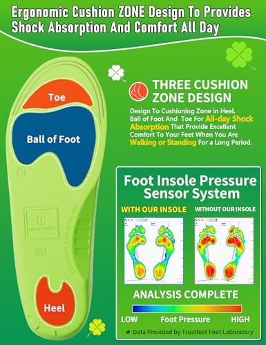 【Medium Arch Support】Trustfeet plantar fasciitis inserts provide excellent support to alleviate issues such as shin splints, Achilles tendonitis, heel pain, and knee pain, Enjoy comfortable support with every step.