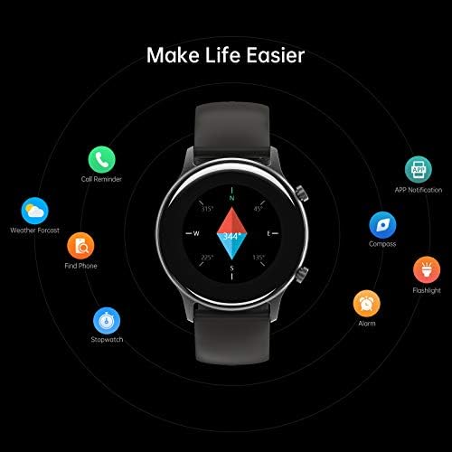🌈 【Smartwatch for Women and Men】 UMIDIGI Urun is a round smartwatch, 44mm in diameter, constructed by light-weight Aluminum frame. Displayed by a 1.1 inch round full color screen. Two Button on the right side together with touching screen provides smooth operating experience.