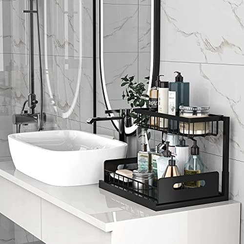 Under Sink Organizer and Storage, 2 Tier Rustproof Under Cabinet Storage, Sliding Kitchen Sink Organizer for Kitchen Bathroom